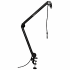 Gira 360 grados completos, fijo, Guiado Internamente 10'/3. Cable XLR de 05 m incluido. El brazo articulado con resorte con 2 kg Capacidad máxima de peso y 940 mm Extensión máxima.