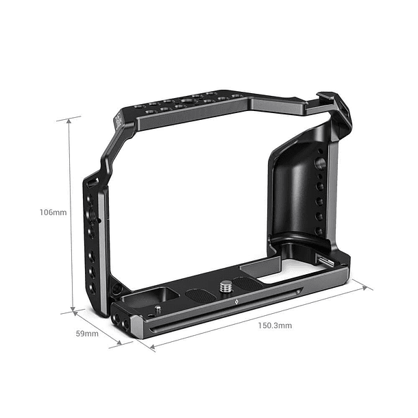 Con múltiples roscas accesorias de 1/4”-20, 3/8”-16 y ARRI 3/8”-16. Se integra con una zapata fría en la parte superior para el micrófono y la luz, y cuenta con un riel NATO en el lado izquierdo. La parte inferior se integra con la placa Arca Swiss y se incluye un destornillador de cabeza plana para asegurar el tornillo de la cámara y se almacena en la parte inferior de la cage. Además, proporciona una ranura para la correa en cada lado para la correa de transporte